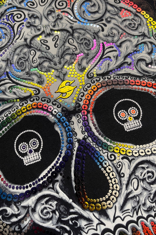 PLAYERA DAMA CALAVERA CON PEDRERIA COLORES NEON SEASHORE